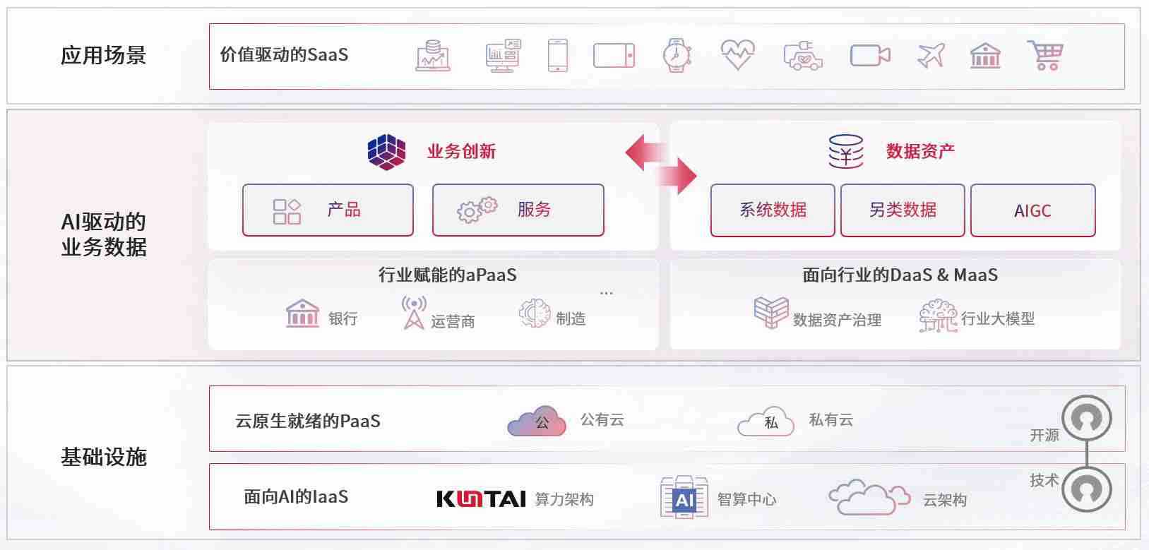 数字时代,,,,围绕企业数字化转型的关键要素,,,,尊龙数码开创性的提出数云融合战略和技术体系框架,,,着力在云原生、、数字原生、、AI原生和信创产业上架构产品和服务能力,,,为处在不同数字化转型阶段的快消零售、、、、汽车、、、、金融、、医疗、、政企、、教育、、、、运营商等行业客户提供泛在的敏捷IT能力和融合的数据驱动能力,,构建跨界融合创新的数字业务场景和新业务模式,,,助力企业级客户建立面向未来的核心能力和竞争优势,,,全面推动社会的数字化、、智能化转型升级。。。